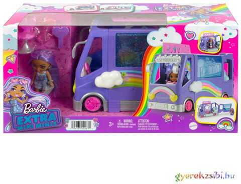 A Barbie Extra Mini Minis kollekció egy imádnivaló, nagyon divatos világba enged betekintést, amit most gyermeked is megtapasztalhat ezzel a szuper játékszettel. A szettben ugyanis egy szivárványos turnébusz található, amivel a legnagyobb kényelemben indulhat gyermeked és legjobb barátnője a turnéra. Ehhez a buszban fotelt, smink felszerelést, egy állványt és a baba különböző kiegészítőit is megtalálja. A szett kiváló minőségben készült, a busz pedig felnyitható oldal fallal és nyitható csomagtartóval rendelkezik, ami még szórakoztatóbbá teszi a játékot majd. Szerezd be és keresd további Extravagáns mini minis babáinkat is kínálatunkban. Jellemzők: - Turnébusz játékszett - nyitható elemekkel - kiváló minőség - babával és kiegszítőkkel - A busz 38 cm-re nyitható